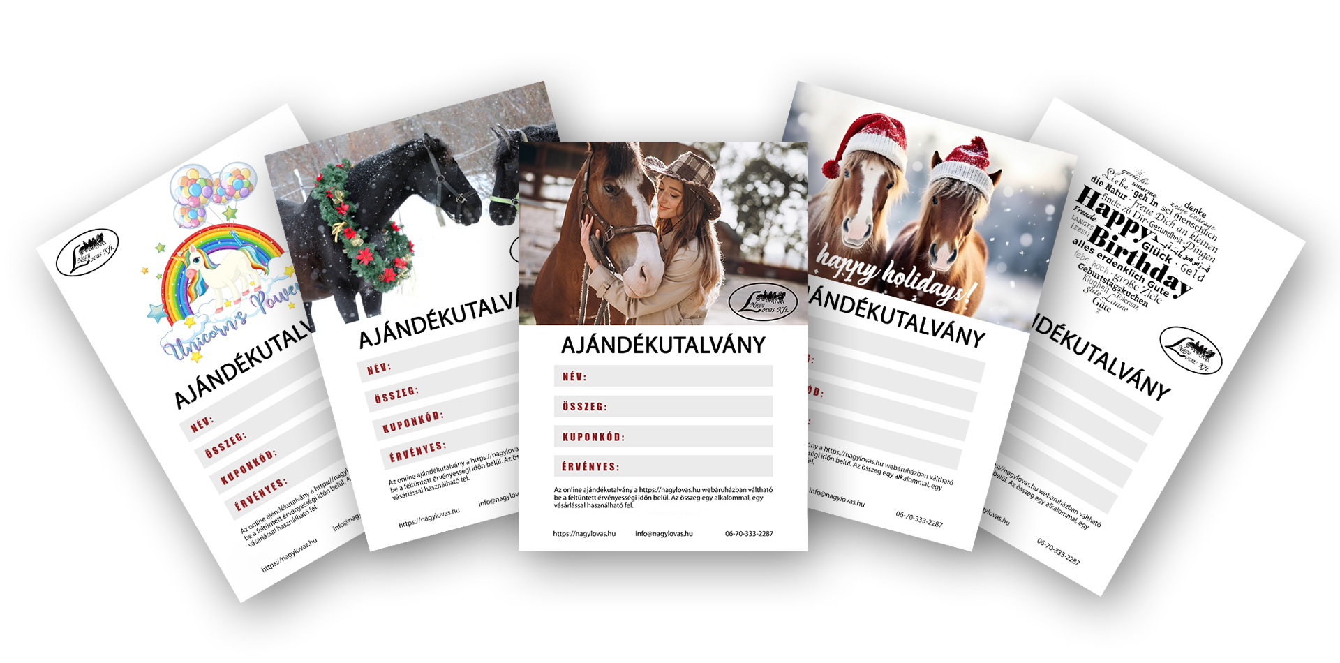 Lepje meg szeretteit, vásároljon nagylovas ajándékutalványt on-line, válassza ki a kívánt fejlécet, és küldje el akár on-line akár kinyomtatva adja oda.